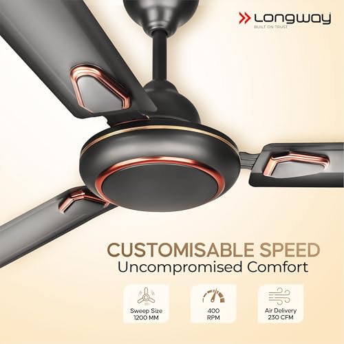 LONGWAY Kiger P1 1200 mm/48 inch Ultra High Speed 3 Blade Anti-Dust Decorative Star Rated Ceiling Fan (Smoked Brown, Pack of 1)