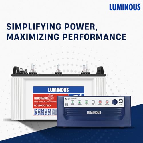 Luminous Inverter & Battery Combo (Eco Watt Neo 900 Square Wave 800VA/12V Inverter, Red Charge RC 15000PRO 120Ah Battery) for Home, Office & Shops
