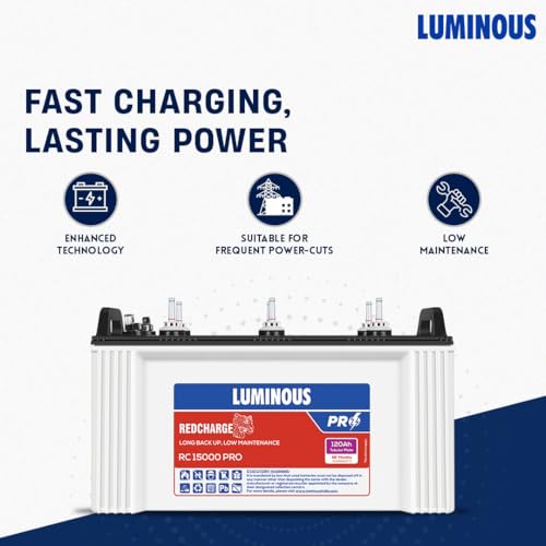 - Reliable 120Ah Short Tubular Battery: Rugged Red Charge RC 15000PRO battery with 120Ah capacity and 6 water level indicators ensures long-lasting backup and easy maintenance.
