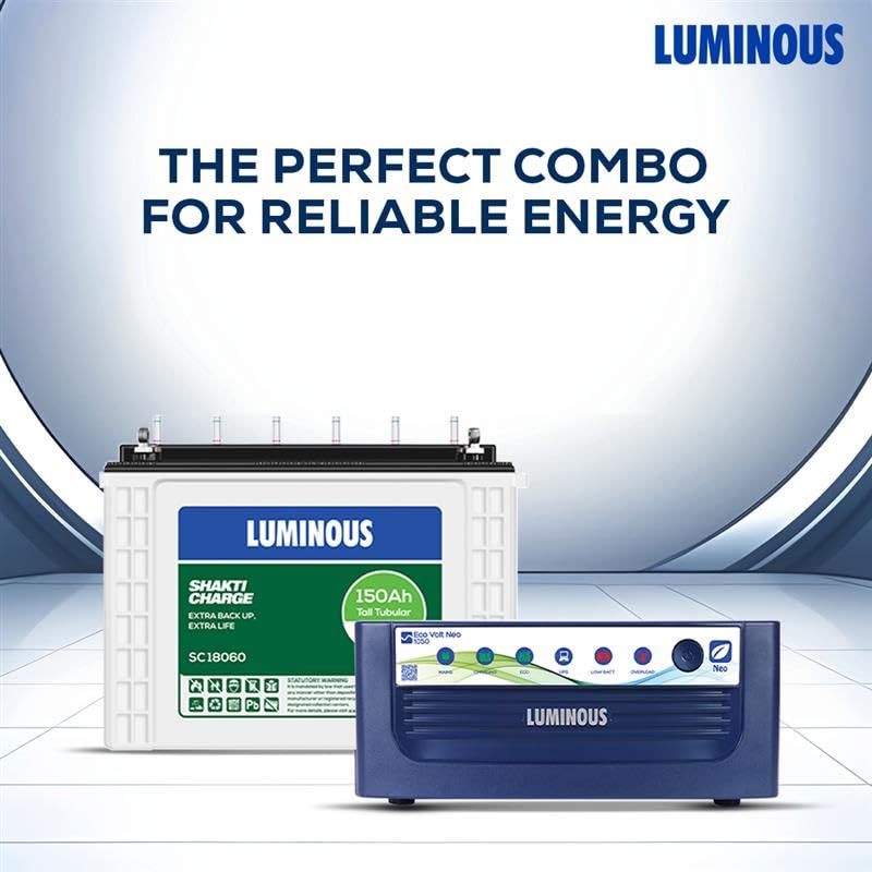 Luminous Inverter & Battery Combo for Home, Office & Shops (Eco Volt Neo 1050 Sine Wave Inverter, Shakti Charge 18060, 150 Ah Tall Tubular Battery)