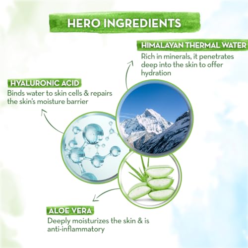 - GOODNESS OF HIMALYAN THERMAL WATER: Rich in minerals like Magnesium, Potassium & Calcium, Himalayan Thermal Water is nature’s answer to maintain the skin’s protective barrier, keep it super hydrated and youthful.