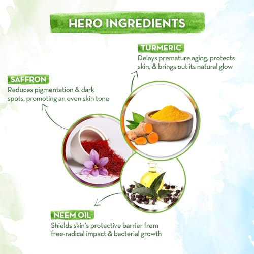 - GENTLY EXFOLIATES: Welcome gentle exfoliation with a silicone brush and revered natural ingredients like Turmeric and Saffron. With foam texture, the Face Wash deeply penetrates the skin pores, resulting in skin that’s visibly clear and healthy.