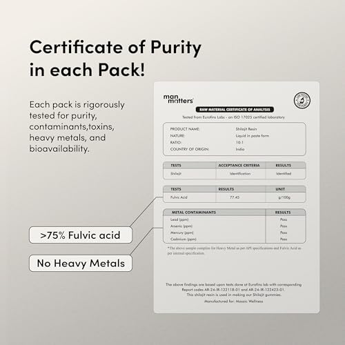 Man Matters Pure Himalayan Shilajit/Shilajeet Gummies with 75% Fulvic Acid & KSM 66 Ashwagandha | Boosts Stamina, Strength & Improves Energy Levels…
