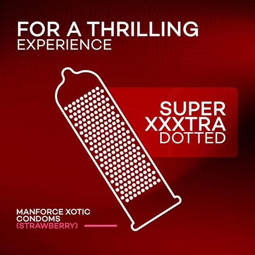 Manforce Xotic Strawberry Flavoured Condoms For Men | 40 Pcs | Extra Dotted & Lubricated Latex Condoms | For Enhanced Pleasure Of Both| India’s No….