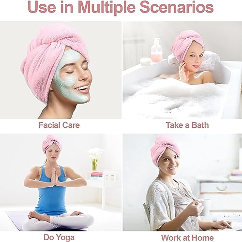 MAXOSHINE Hair Towel Wrap for Women-Quick Drying Microfiber Towel for Hair with Elastic Loop for Tying-Super Absorbent Head Towels Wrap for Ladies…