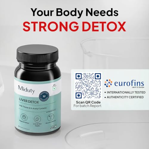 Miduty Liver Detox Supplement Milk Thistle with N-Acetyl Cysteine 900 mg | Natural Body Detox & Digestive Enzymes – Fatty Liver Care | Natural…