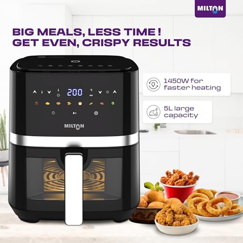 - ▶ BIG 5 LITRE CAPACITY – PERFECT FOR FAMILY & PARTY MEALS Looking for the best air fryer for large families? The Milton Rapid Air Fryer 5 Litre is perfect for preparing bigger meals for gatherings and everyday use. Cook generous portions in one go with its spacious air fryer basket – ideal for crispy fries, grilled chicken, snacks, and more.