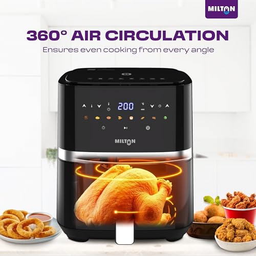 - ▶ HIGH-SPEED FAN FOR EVENLY COOKED MEALS Equipped with a powerful high-speed convection fan, the Milton Rapid Air Fryer ensures even heat distribution for crispy, delicious results every time. Enjoy fried food taste with minimal oil using this smart air fryer.