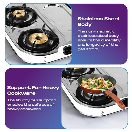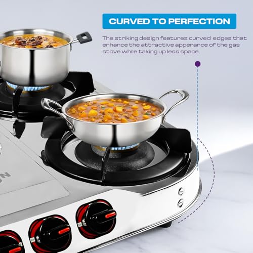 - ✅ It comes with stainless steel thick guage body. It offers a rust resistance while delivering long lasting performance.; Equipped with 4 Burners – (1 Jumbo,1 Regular and 2 Small) Fuel Efficient Tri Pin Brass Burners for your varied needs.