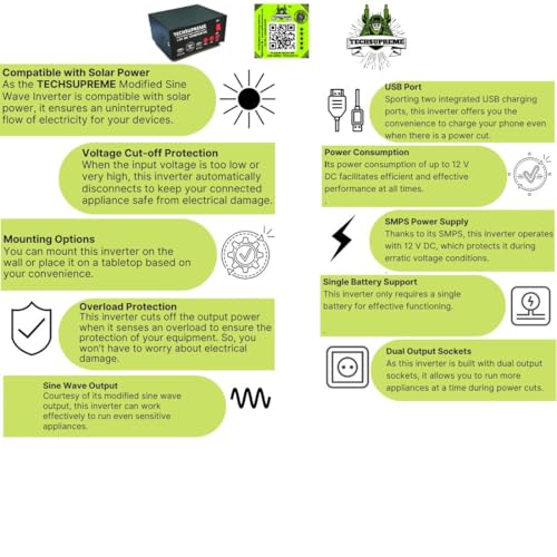 - Coverts 12v DC to 220v AC, 200 Watt, Powerful AC Output with 2 Sockets.