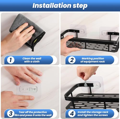 This bathroom organizer is both stylish and functional. The black metal shelf looks modern and holds weight well without wobbling. Installation was a breeze with the adhesive back—no drilling required! It sticks firmly to the wall and hasn’t budged even in a humid bathroom. Great for storing shower essentials neatly. Definitely worth it!