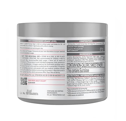 - Advanced Creatine Formula – MuscleBlaze Creatine Monohydrate CreAMP delivers 100% pure creatine monohydrate with MB CreAbsorb for enhanced stability and absorption.