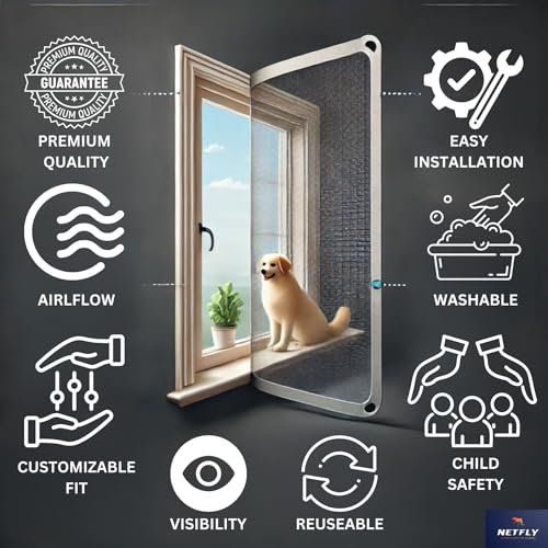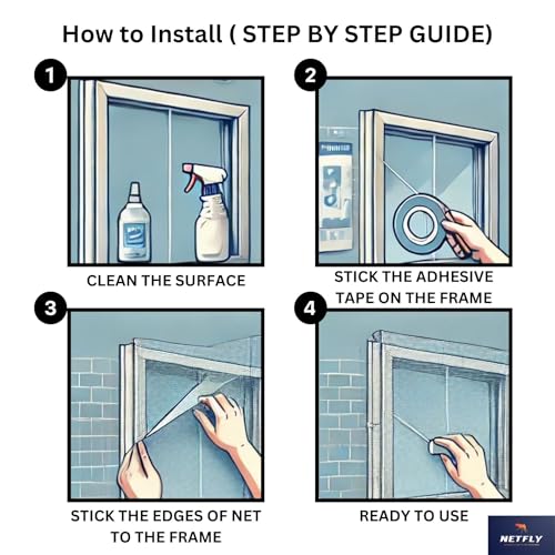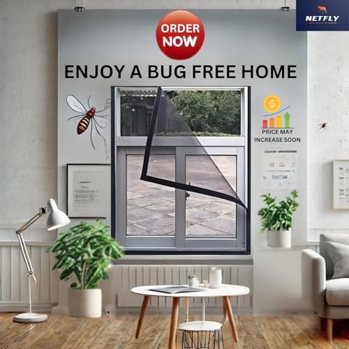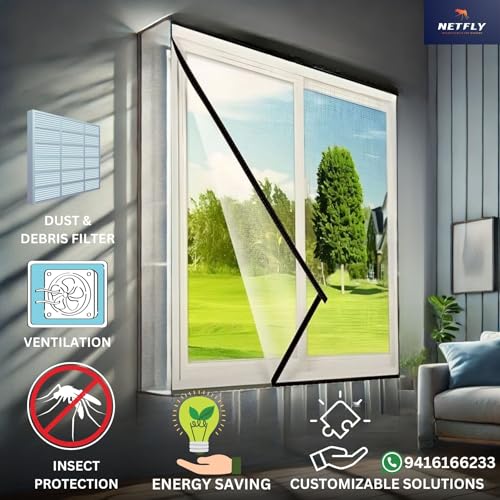 Netfly 120 GSM Window Mosquito Net – Easy Install Polyester Mesh Insect Screen for Windows & Doors, Strong Adhesive Velcro, Washable & Reusable Bug…