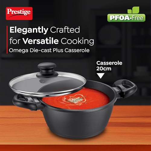 Omega Die-Cast Plus Aluminium Non-Stick Casserole 20 Cm with Glass Lid