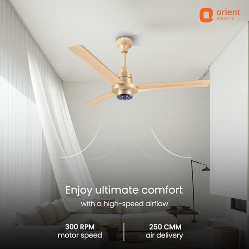 Orient Electric I Tome Pro 1400 mm BLDC Ceiling Fan with Remote | BEE 5-star rated Energy Saving Fan | 3-year warranty by Orient | (Topaz Gold)