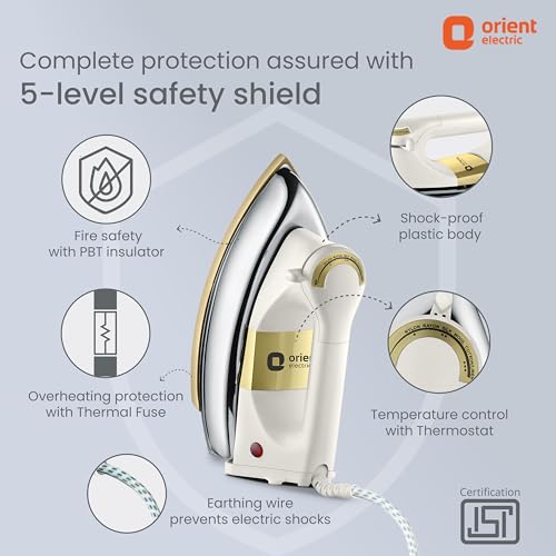 Orient Electric Kratos | 1000 W Heavy Weight Dry Iron (Press) | 2-year Replacement warranty by Orient | Non-stick Soleplate | 180-degree swivel…
