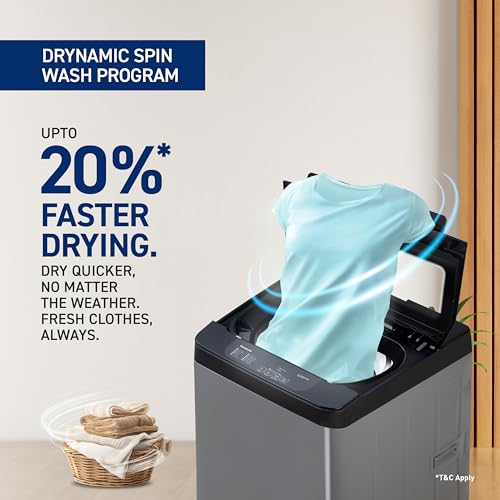 - Key Performance Features: Drynamic Spin: Reduces drying time by up to 20%* | Aqua Spin Rinse: For the first rinse, a powerful shower over a wide area effectively washes away foam. Compared to the conventional way of rinsing by soaking, this achieves water saving of up to 28% | Active Foam Wash Technology: Creates fine, high-density foam before the washing cycle starts. The foam lifts, separates and removes dirt particles from deep within the fibres | Quick Wash: The washing machine can weigh the load accurately and accordingly select the appropriate washing program as well as the water level | Overheating Control | Auto Power off with Memory Backup