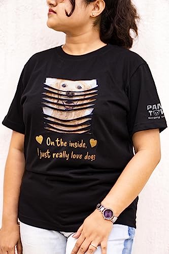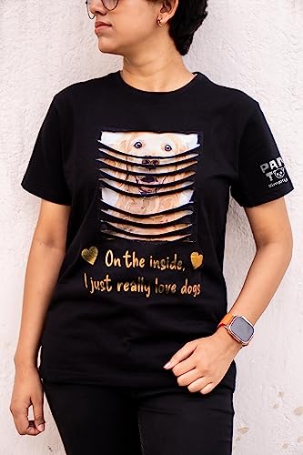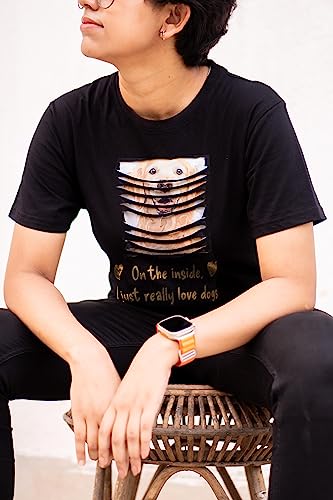PANDA TOWN Unisex Cotton – Gen-Z Trendy Ripped T-Shirt – Love Dogs Golden Retriver Cute T-Shirt – Black
