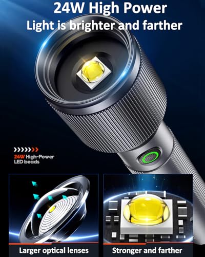 - 【High Brightness 1000 Lumens】This Philips LED flashlight features 24W ultra bright LED light with high durability, providing up to 1000 lumens of strong light illumination, easily meeting the needs of different scenarios, whether it’s night camping, hiking exploration, or emergency situations