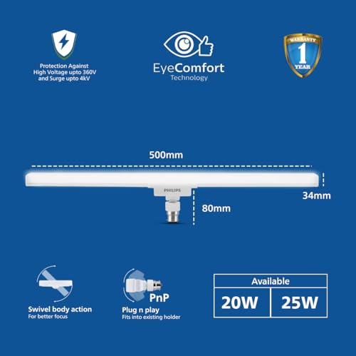 - Wider light spread: The new Philips T Beamer 20 Watt with its futuristic design resembling a tube light, has a brighter and wider light spread