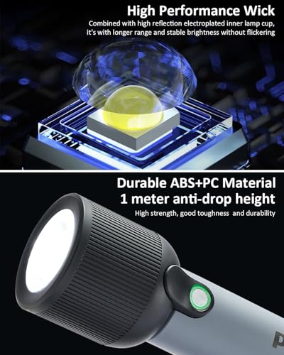 - 【Waterproof & Anti Drop】12 month warranty. The flashlight is made of durable ABS+PC material, high strength and good toughness, drop resistance height of 1.5 meter. Hidden waterproof USB-C charging port, IP44 waterproof and dustproof, safe and reliable