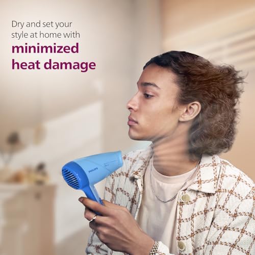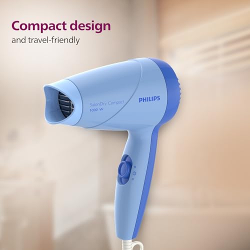 Philips HP8100/60 Compact Hair Dryer| 2 Flexible heat setting| ThermoProtect prevents overhearting | 1000 Watts- Blue