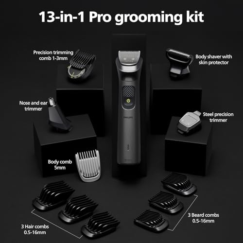 - 13 in 1 All in One Trimmer for ultimate precision for your face, hair, body, nose and private parts.