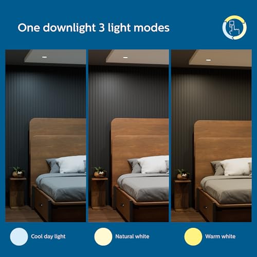 - Scene Switch Feature: Switch effortlessly between warm white, cool white, and cool daylight with a simple toggle: The PHILIPS StarFit 3in1 JB Downlighter offers three color temperatures in one fixture – warm white, cool white, and cool daylight – which can be easily switched using a simple toggle. This feature allows you to customize your lighting to suit your mood, preference, or task.