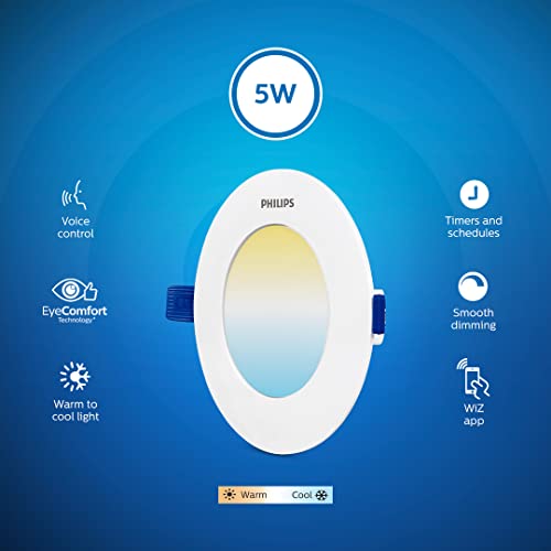PHILIPS polycarbonate Smart Wi-Fi LED Downlighter 5-Watt Round Wiz Connected Compatible with Amazon Alexa and Google Assistant (Warm White/White +…