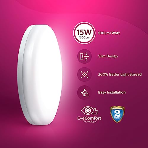 PHILIPS Rimless Full Glow 15-watt Round LED Surface Downlighter | Surface LED Downlight for Ceiling | LED Ceiling Light for Home & Hall | Natural…