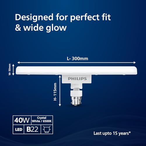 - Wider light spread: The new Philips T bulb with its futuristic design resembling a tube light, has a brighter and wider light spread, This Philips T-Bulb delivers flicker-free light