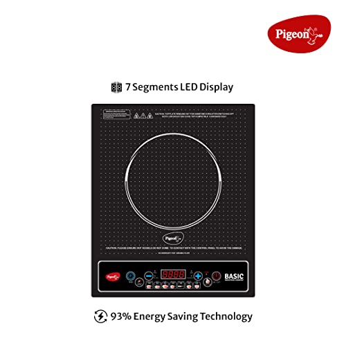 Pigeon Basic Induction Cooktop 1200 W, Auto-Shut off, Soft Push Button with 7 Segments LED Display for Power and Temperature – Black