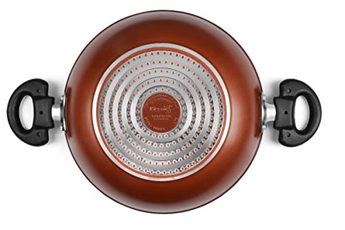 - Material: Aluminium ; Size: Kadai With Glass Lid (24cm), Fry Pan (24cm) and Flat Tawa (25cm); Base type: Induction Base; Base thickness: 2.8 mm; Included components: 1 Non-stick Kadai With Glass Lid, 1 Non-stick Fry Pan and 1 Non-stick Flat Tawa; Colour: Brown