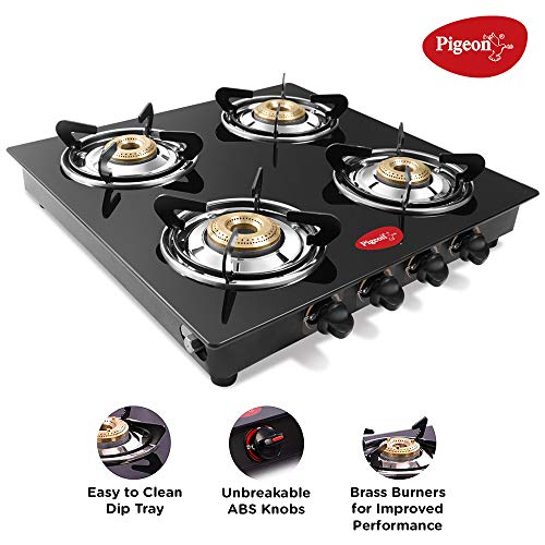 - Material: Stainless Steel, , Color: Black, Nylon knobs: Ergonomically designed knobs with heat resistant nylon covers for 4 Burner Gas Stove