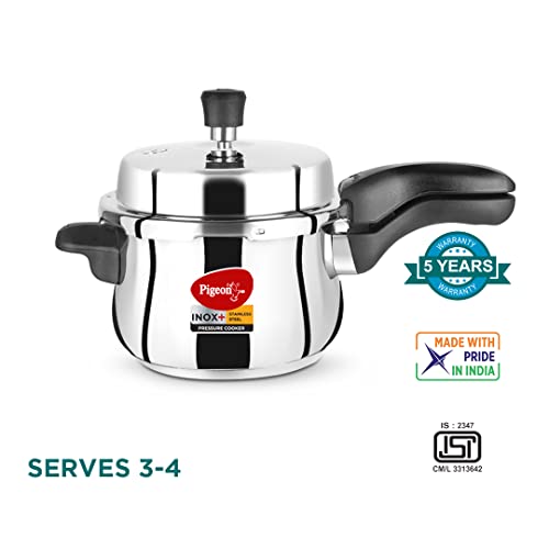 - At amazon.in you can purchase Pigeon by Stovekraft 14502 Induction Base Outer Lid Stainless Steel Pressure Cooker, 5L, Silver for only Rs. 1,599