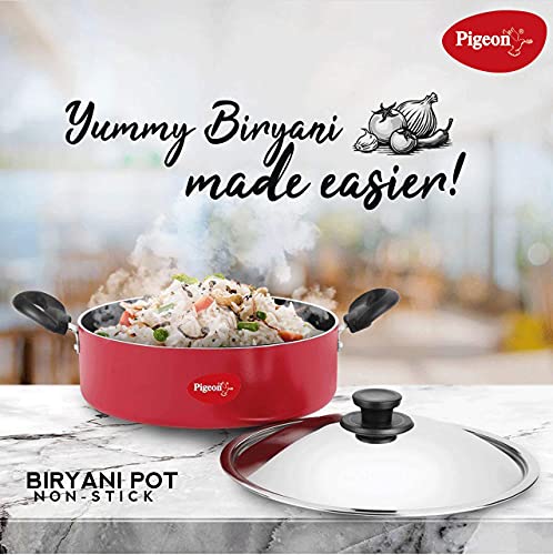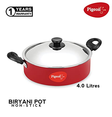Pigeon by Stovekraft Aluminium Non-Stick Biriyani Pot with Lid, 4 litres (Red)