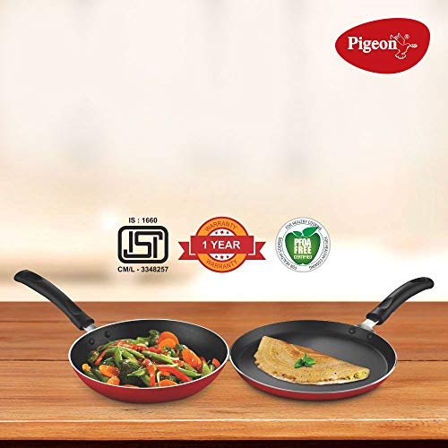 Pigeon by Stovekraft Aluminium Outer Lid Pressure Cooker Cooker 2,3 and 5 Litre with Flat Tawa and Fry Pan Combo, silver, large, 14465