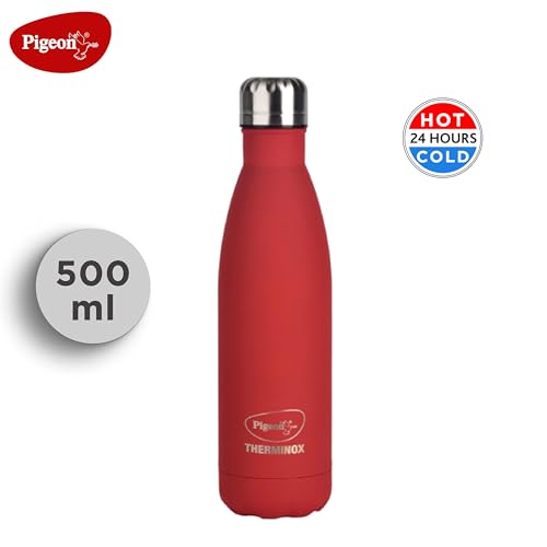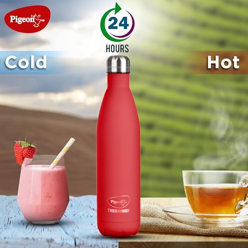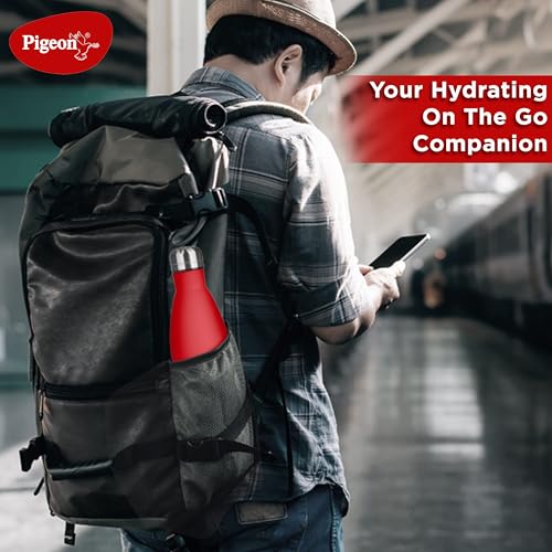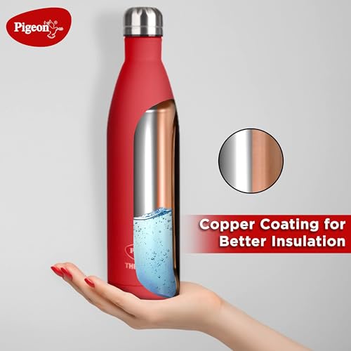 Pigeon by Stovekraft Aqua Scarlet Stainless Steel Double Walled Leak Proof Thermos Water Bottle with Copper Coating Inside for Better Hot and Cold…