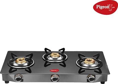 Pigeon by Stovekraft Brunet Blackline 3 Burner Glass Gas Stove, Black