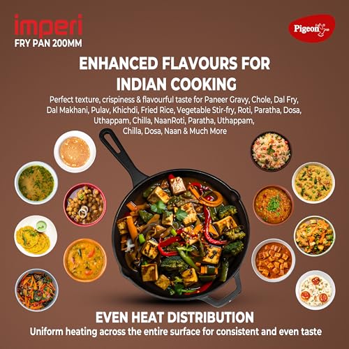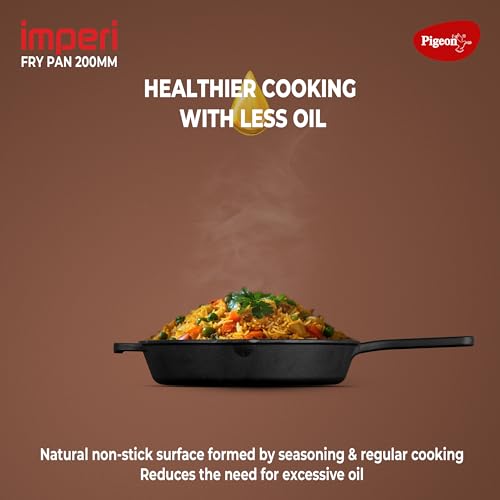 Pigeon by Stovekraft Cast Iron Frying Pan, 20 cm | Naturally Nonstick | Pre-Seasoned with 100% Vegetable Oil | Toxin-Free | Perfect Crisping | Stylish Handle | Bring Back…