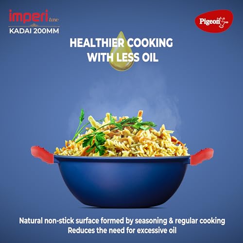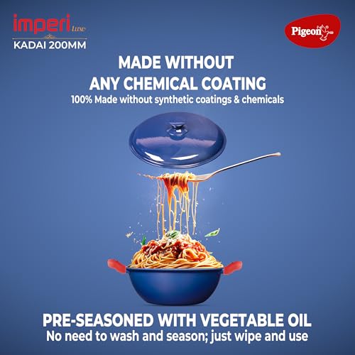 Pigeon by Stovekraft Cast Iron Kadai with Cast Iron Lid | Medium, 20 cm | Enamel Coated | Luxurious Mirror Finish | Toxin-Free | High Pressure Casting | Cook with Style,…
