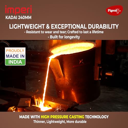 A10: Built to last for generations, the Pigeon Cast Iron Kadai is resistant to warping, scratching, and corrosion, making it an excellent long-term investment for your kitchen.