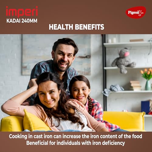- Pre-Seasoned with Vegetable Oil: The Pigeon Cast Iron Kadai comes pre-seasoned, providing a natural nonstick surface right out of the box. This means you can start cooking immediately without the need for initial seasoning.