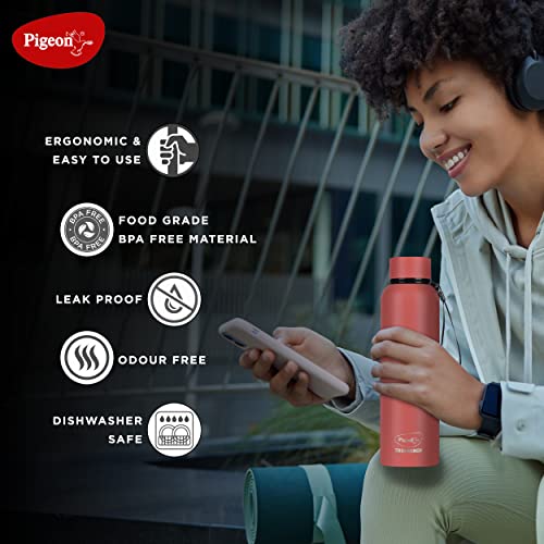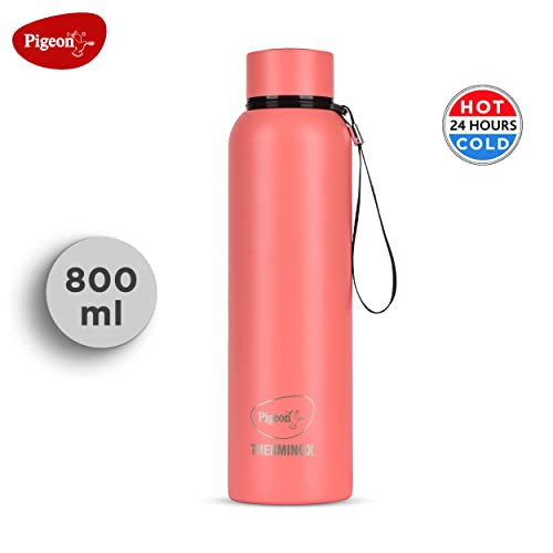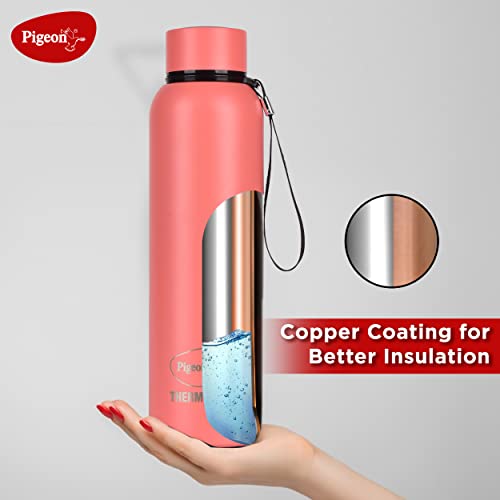 Pigeon by Stovekraft Croma Coral Stainless Steel Double Walled Leak Proof Thermos Water Bottle with Copper Coating Inside for Better Hot and Cold Retention 800 ml (Orange) (1…