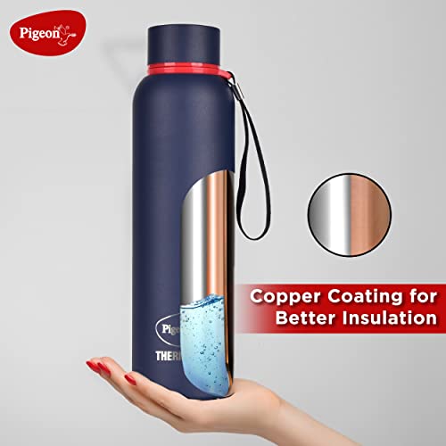 Pigeon by Stovekraft Croma Navy Stainless Steel Double Walled Leak Proof Thermos Water Bottle with Copper Coating Inside for Better Hot and Cold Retention 600 ml (Blue) (1 Year Warranty)