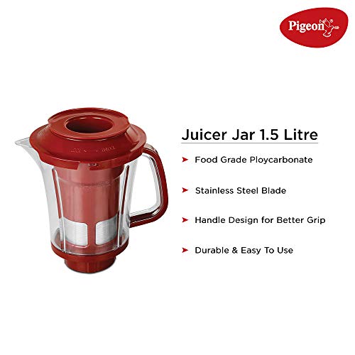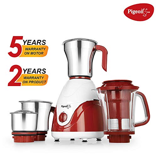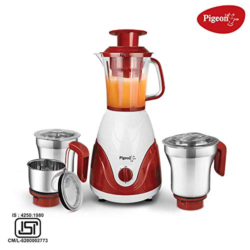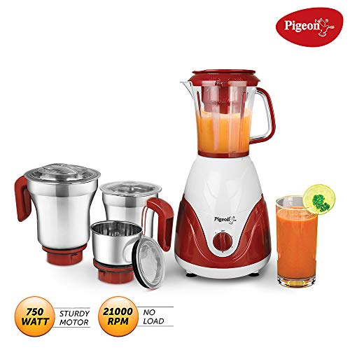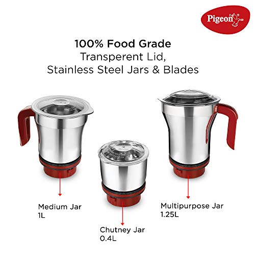 Pigeon by Stovekraft Estella Advanced Grinder with 3 jars and 1 Juicer Jar, 750 Watts, White and Red