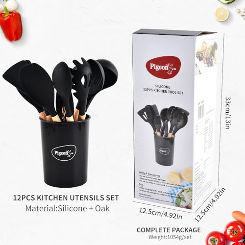 The Pigeon Silicone Kitchen Utensils Set includes 12 durable and heat-resistant pieces with wooden handles. BPA-free and perfect for non-stick cookware! 🍲