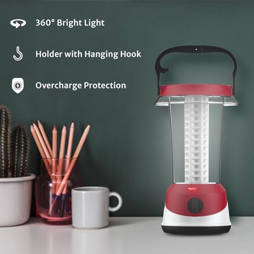 Pigeon by Stovekraft Sirius Emergency 360 Degree Rechargeable Lantern with 1600 mAH and 8 Hours Backup, Model: 14437 (Red, Medium)