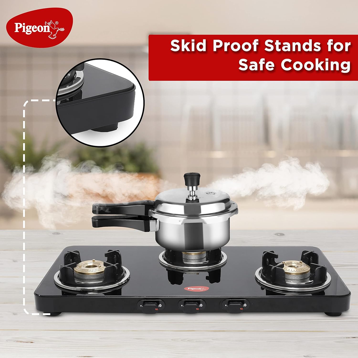 - The lowest price of Pigeon by Stovekraft Sleek 3 Burner Ultra Slim Gas Stove with Glass Top, Manual, Black was obtained on October 21, 2025 7:05 am.