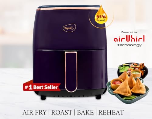 Pigeon Healthifry Plus Digital Air Fryer, 360° High Speed Air Circulation Technology 1400 W with Non-Stick 4.2 L Basket – Purple
